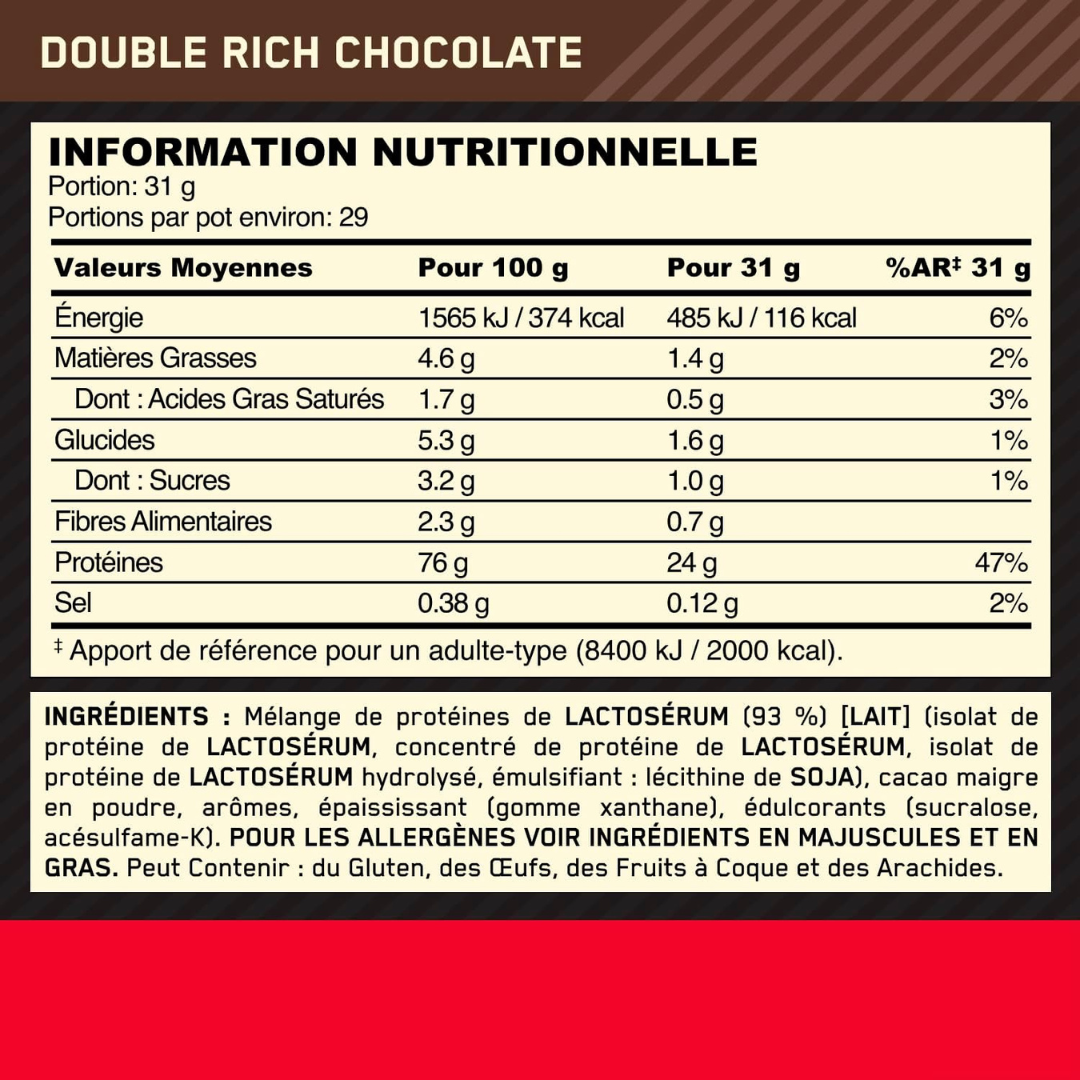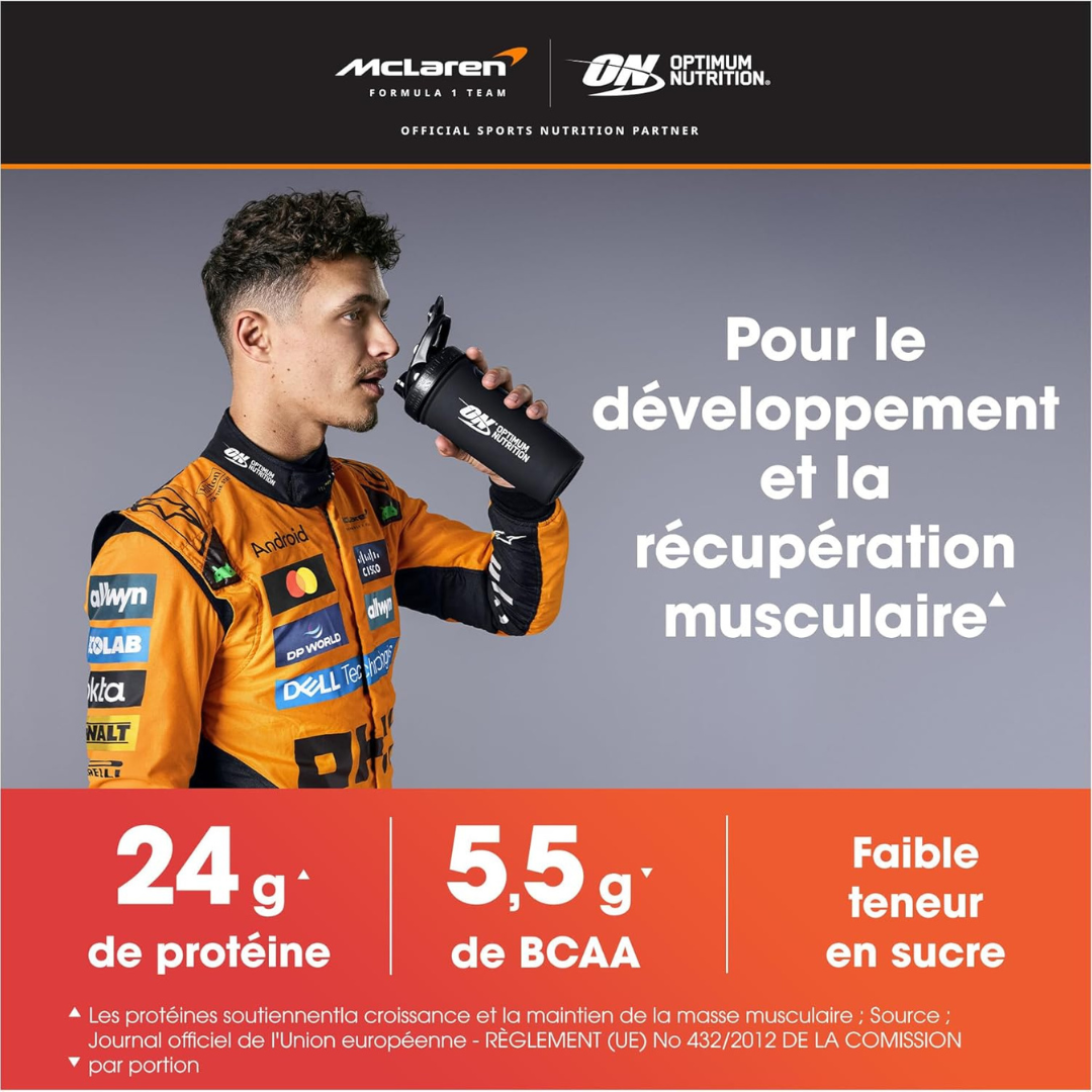 ON Gold Standard Whey 2LBS est une protéine en poudre de haute qualité qui fournit 24 grammes de protéine de lactosérum par portion pour soutenir la construction et la récupération musculaire.