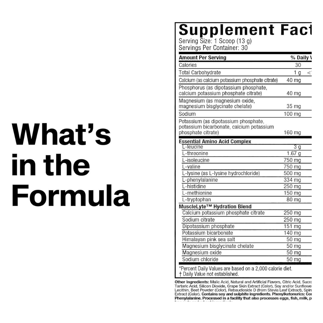Platinum EAA+ offre un mélange complet d’acides aminés essentiels, y compris les BCAA, pour soutenir la récupération et la croissance musculaire.